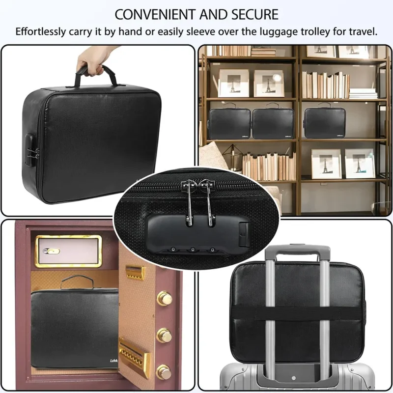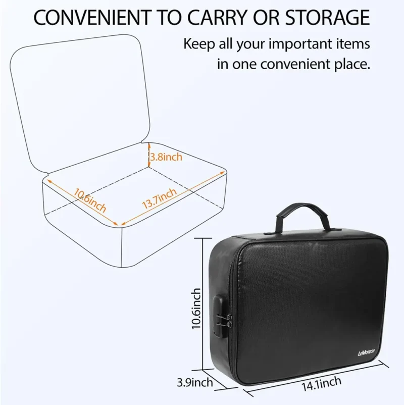 Designed for portability, these fireproof bags include a sturdy top grab handle and a convenient back strap handle, making them ideal for home organization, office security, business travel, and emergency preparedness. The lightweight design (only 2.05 pounds) ensures you can easily transport your important documents wherever you go.